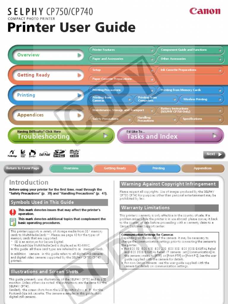 Return to Cover Page Overview Getting Ready Printing Appendices