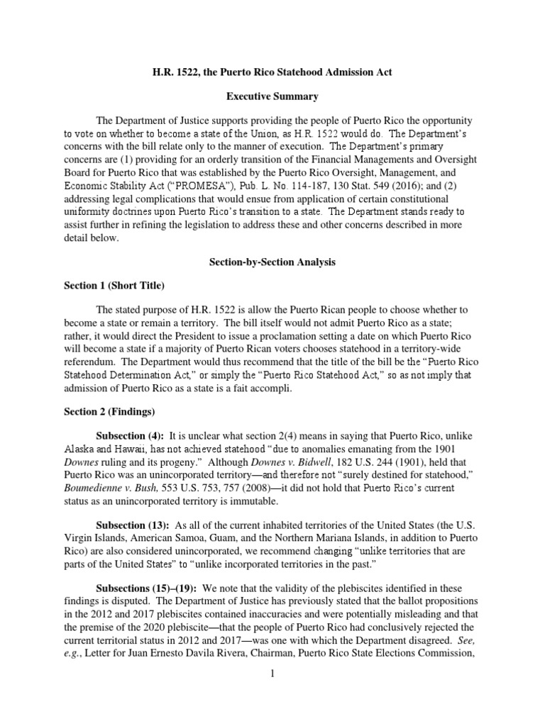 The Department of Justice supports providing the people of Puerto Rico the opportunity