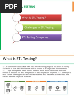 Both ETL testing and database testing involve data validation, but they are not the same. ETL