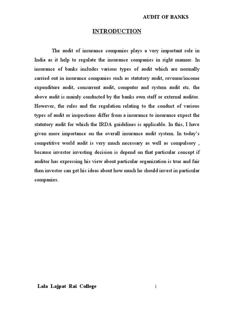 concurrent audit, etc. The statutory audit of Insurance company is like a post