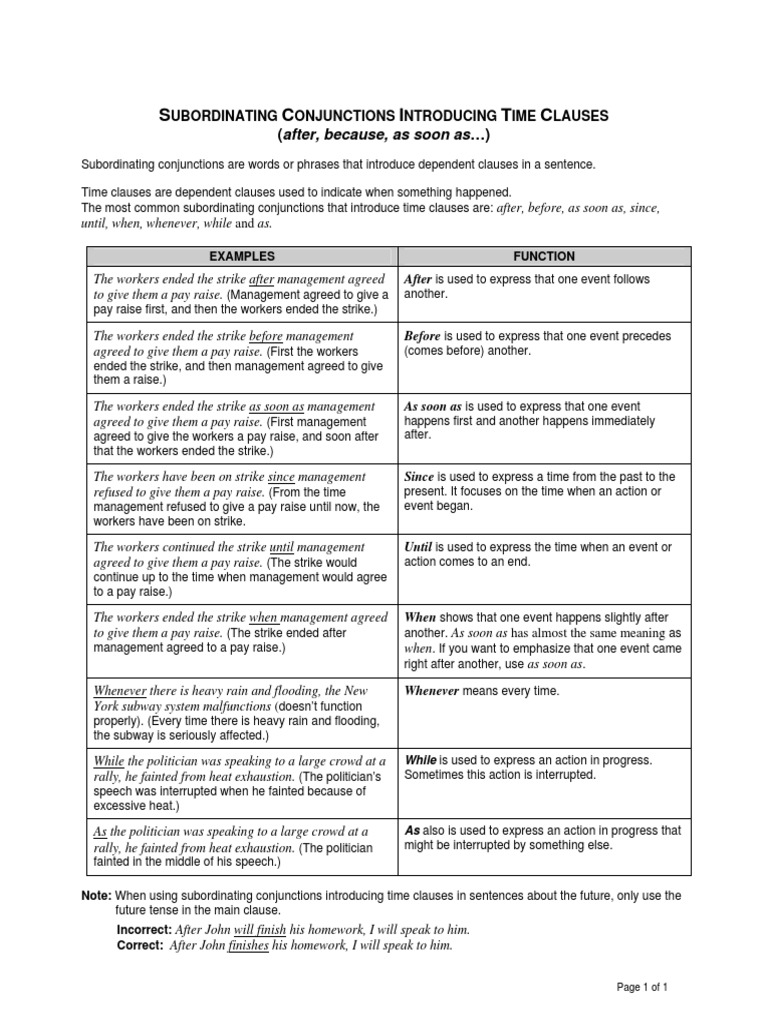 Note: When using subordinating conjunctions introducing time clauses in sentences about the future, only use the