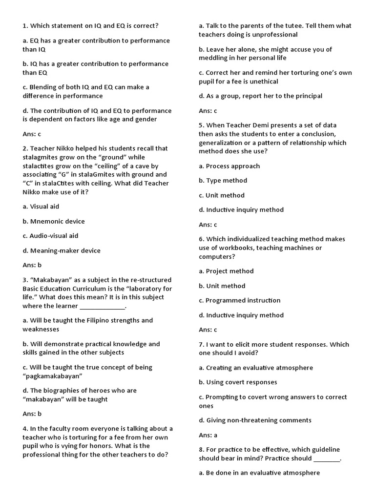 1. Which statement on IQ and EQ is correct? a. Talk to the parents of the tutee.