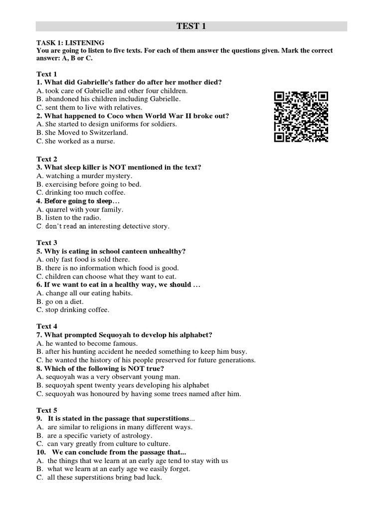You are going to listen to five texts. For each of them answer the questions given. Mark the correct