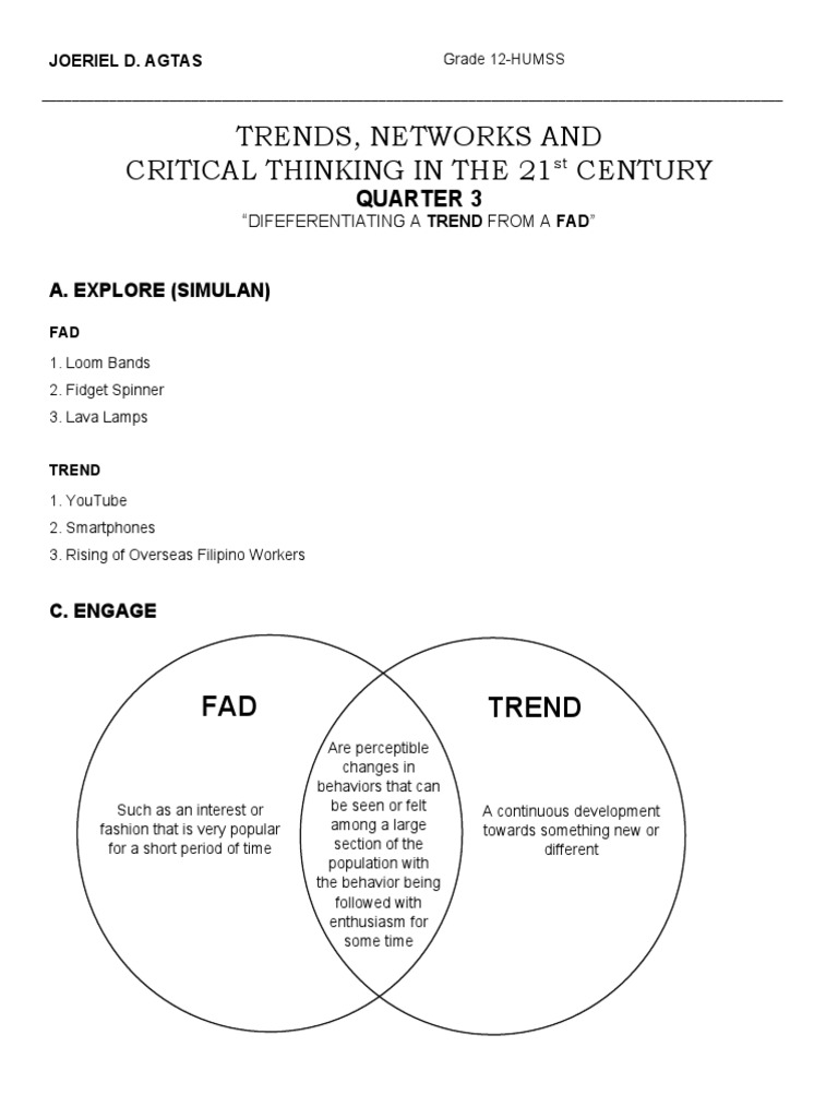 “DIFEFERENTIATING A TREND FROM A FAD”