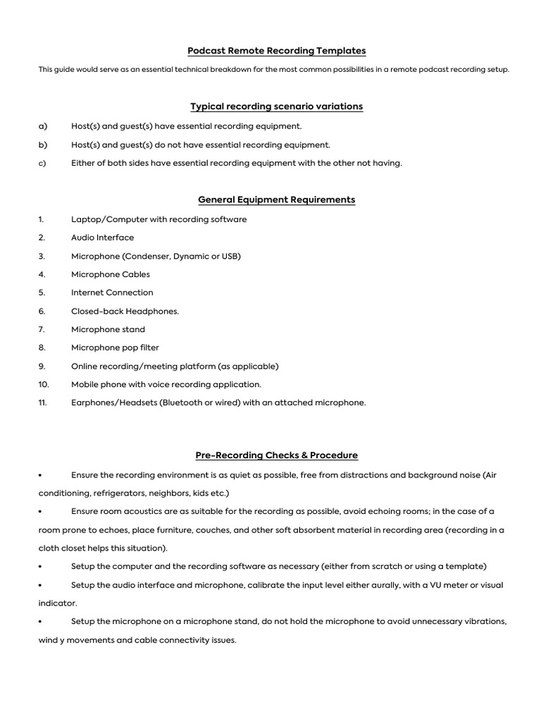 This guide would serve as an essential technical breakdown for the most common possibilities in a remote podcast recording setup.