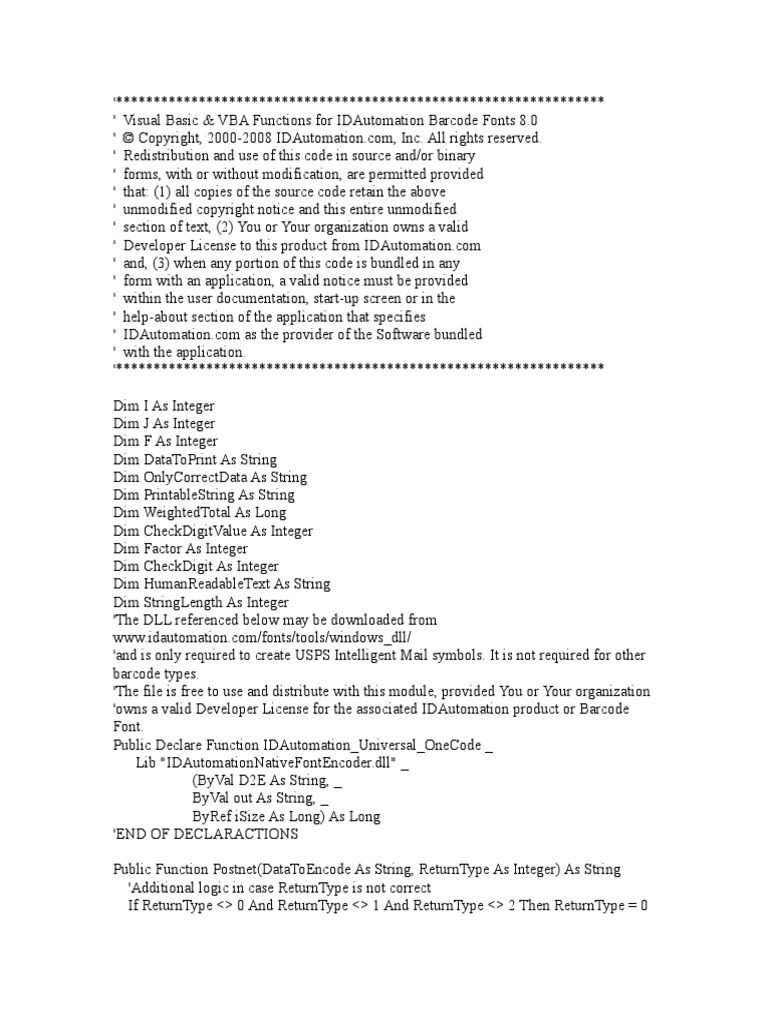 ' Visual Basic & VBA Functions for IDAutomation Barcode Fonts 8.0