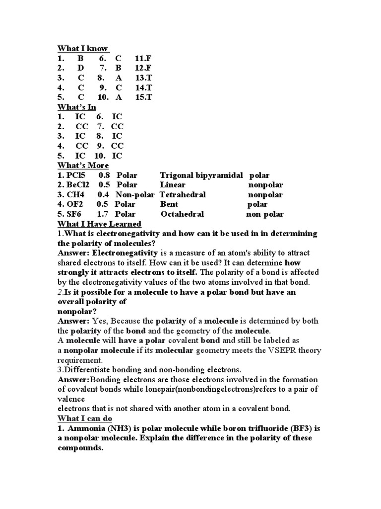 1. PCl5 0.8 Polar Trigonal bipyramidal polar