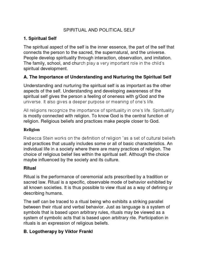 The spiritual aspect of the self is the inner essence, the part of the self that