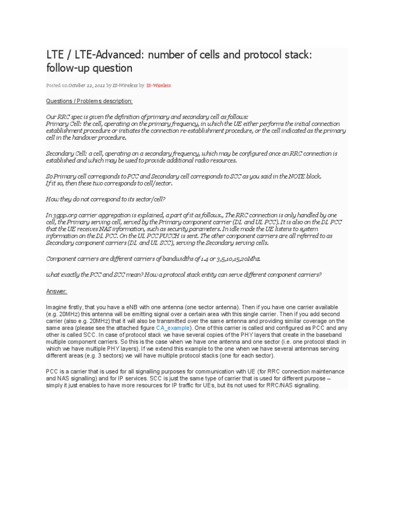 multiple component carriers. So this is the case when we have one antenna and one sector (i.e. one protocol stack in