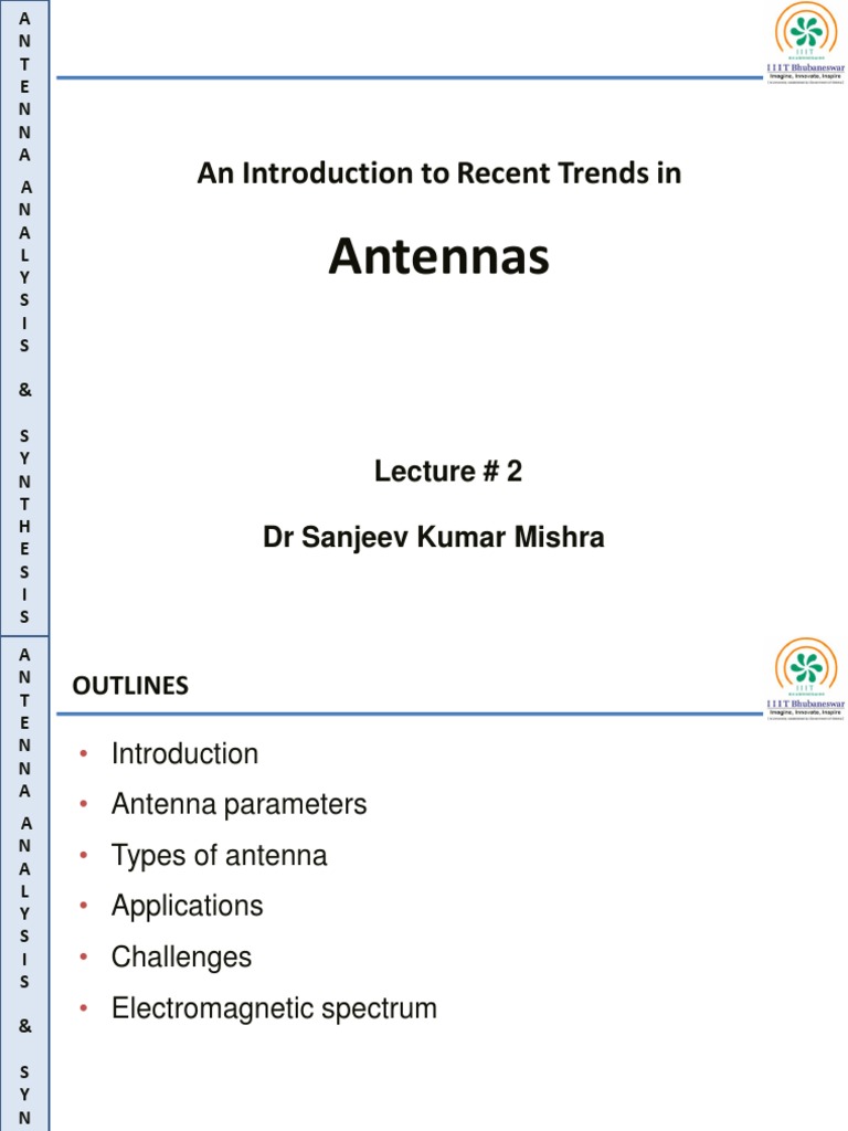 S • Analyze the performances of wide band antennas in frequency domain, time
