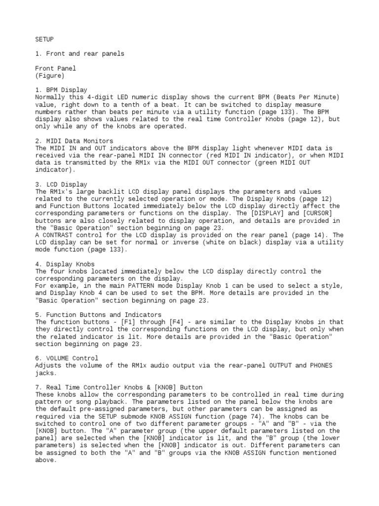 the various parameters that are available for editing (the RM1x cursor appears as a