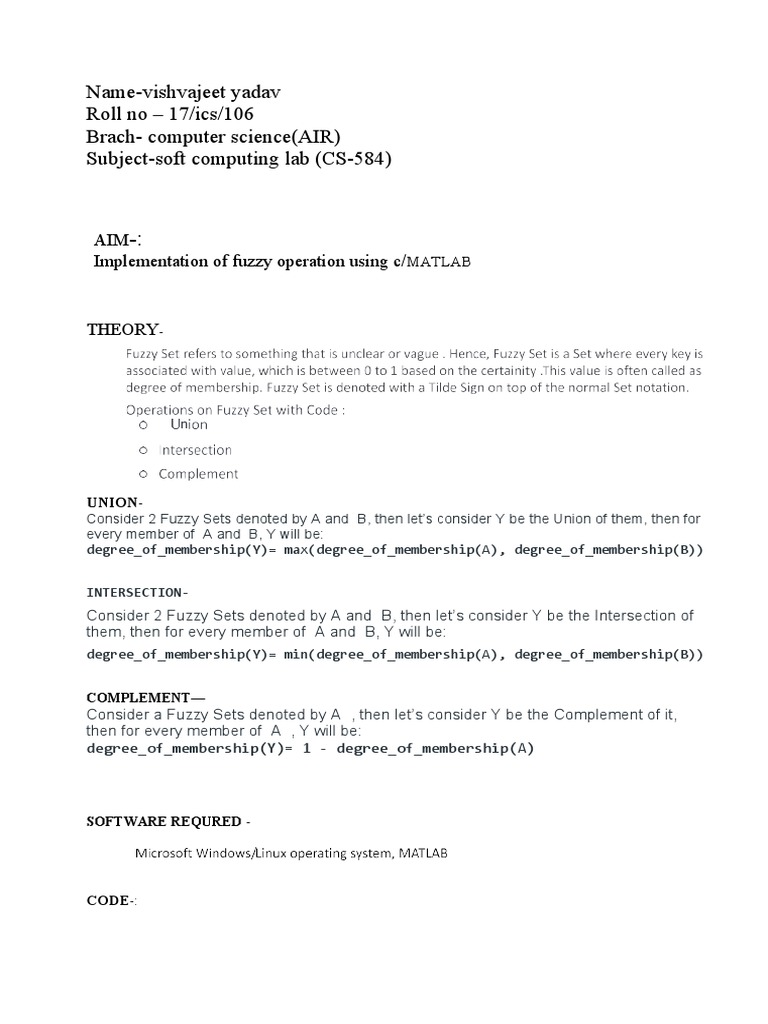 Consider 2 Fuzzy Sets denoted by A and B, then let’s consider Y be the Intersection of
