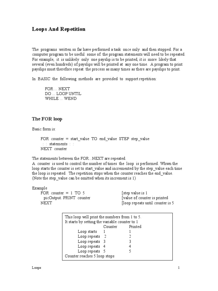 Loop Exercises Using FOR..NEXT, WHILE..WEND or DO..LOOP