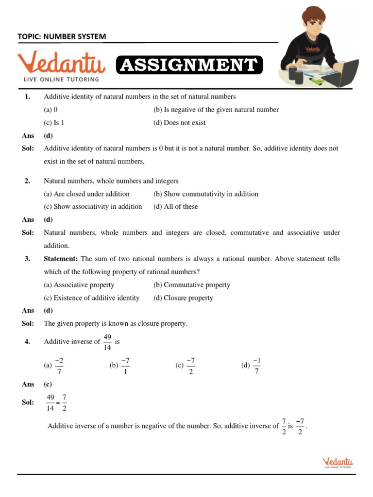 Sol: Natural numbers, whole numbers and integers are closed, commutative and associative under