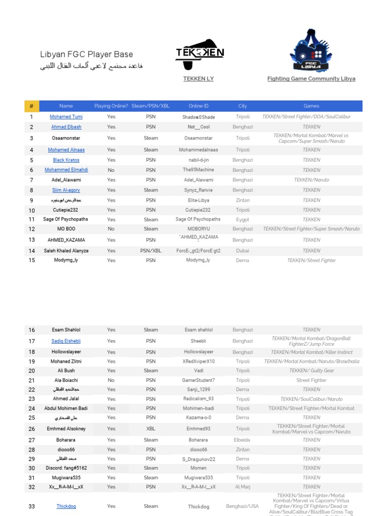 29 ﻣﺤﻤﺪ اﻟﻘﺒﺎﺋﻠﻲ Yes PSN S_Dragunov22 Derna TEKKEN