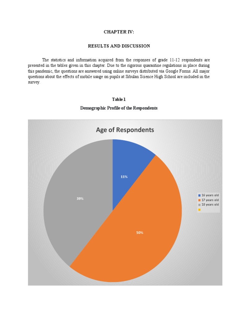 The statistics and information acquired from the responses of grade 11-12 respondents are