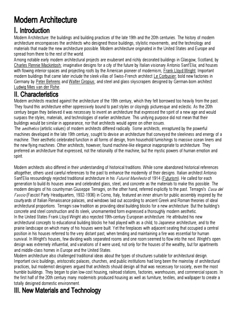 materials that made the new architecture possible. Modern architecture originated in the United States and Europe and