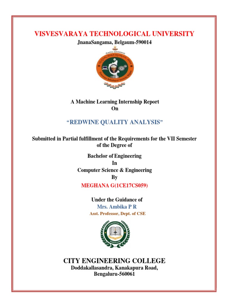 Certified that the Machine Learning Project work entitled “REDWINE QUALITY
