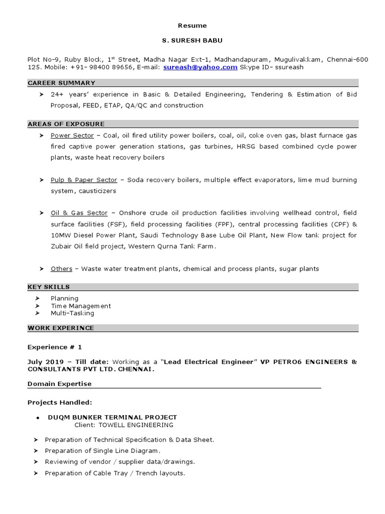 July 2019 – Till date: Working as a “Lead Electrical Engineer” VP PETRO6 ENGINEERS &