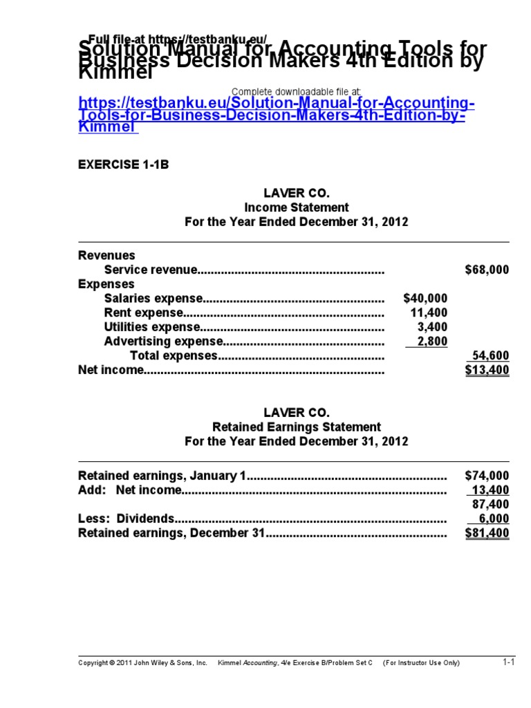 Copyright © 2011 John Wiley & Sons, Inc. Kimmel Accounting, 4/e Exercise B/Problem Set C (For Instructor Use Only) 1-1