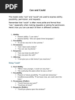 The three main uses of Can are: 1) ability 2) possibility and 3) permission. However there are some other used of Can as