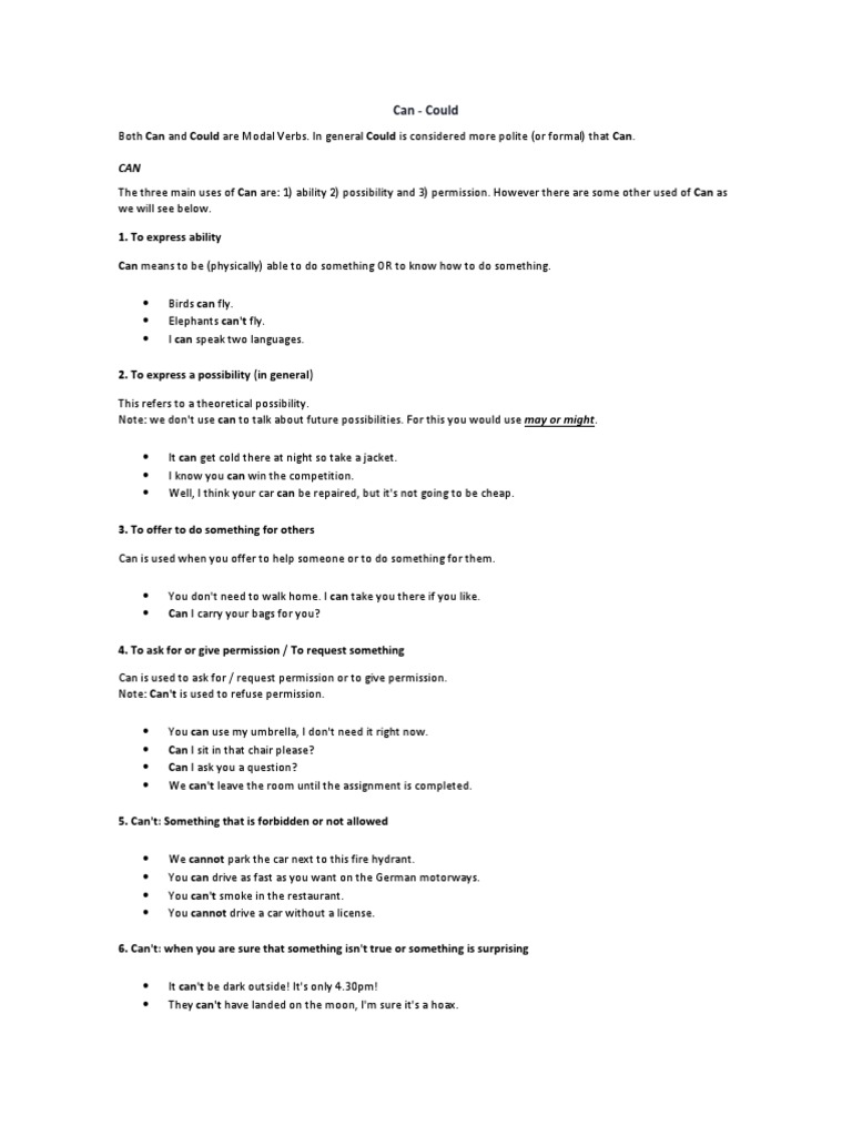 Would + Can = Could. Note: Would be able to can replace could in the following examples.