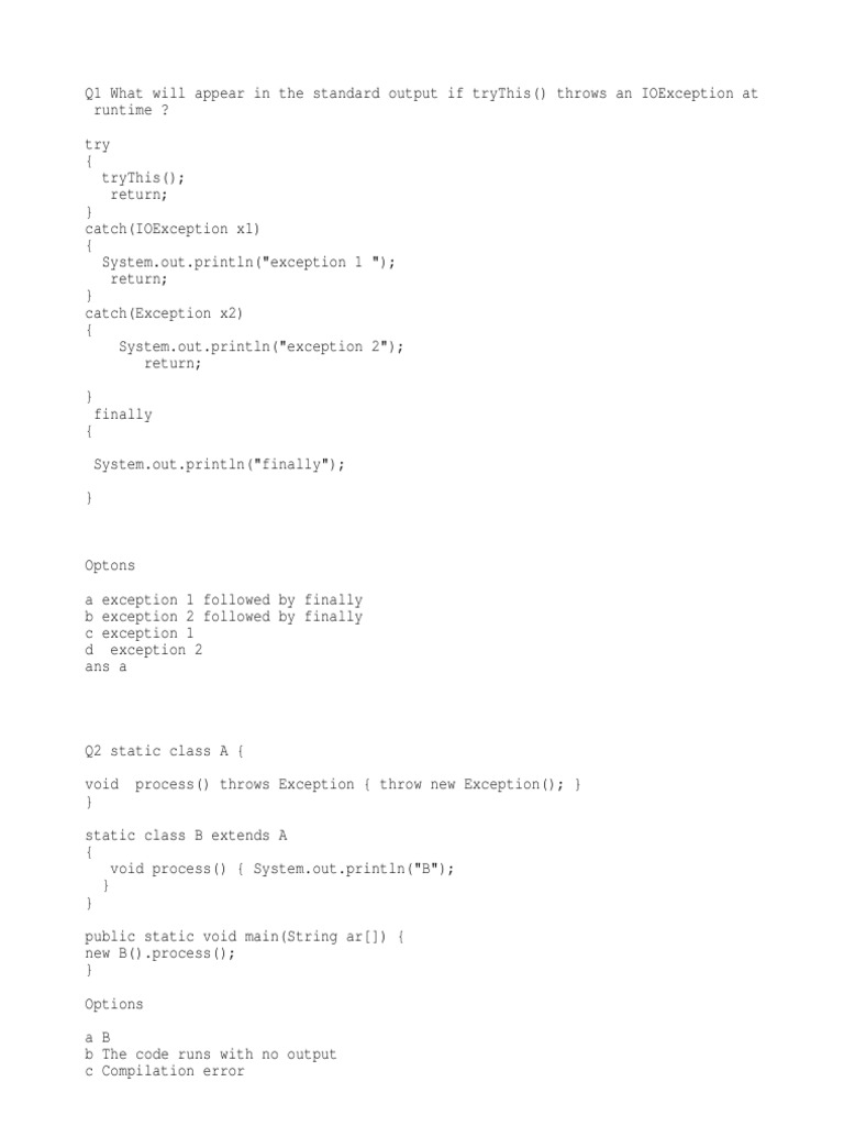 Q1 What will appear in the standard output if tryThis() throws an IOException at