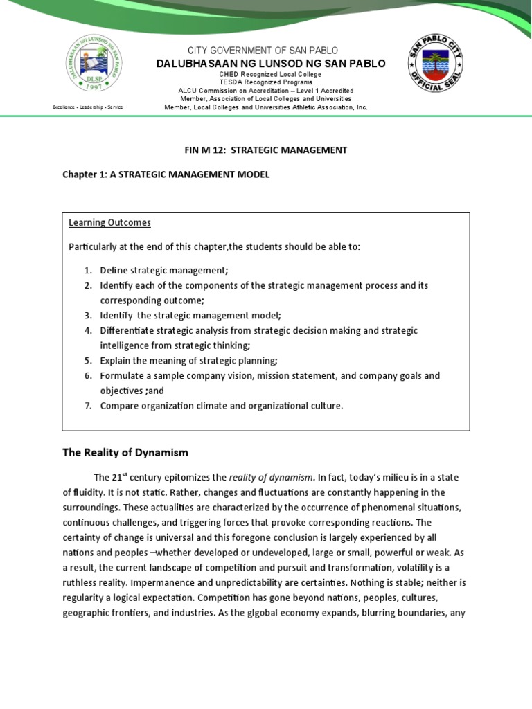 Chapter 1: A STRATEGIC MANAGEMENT MODEL