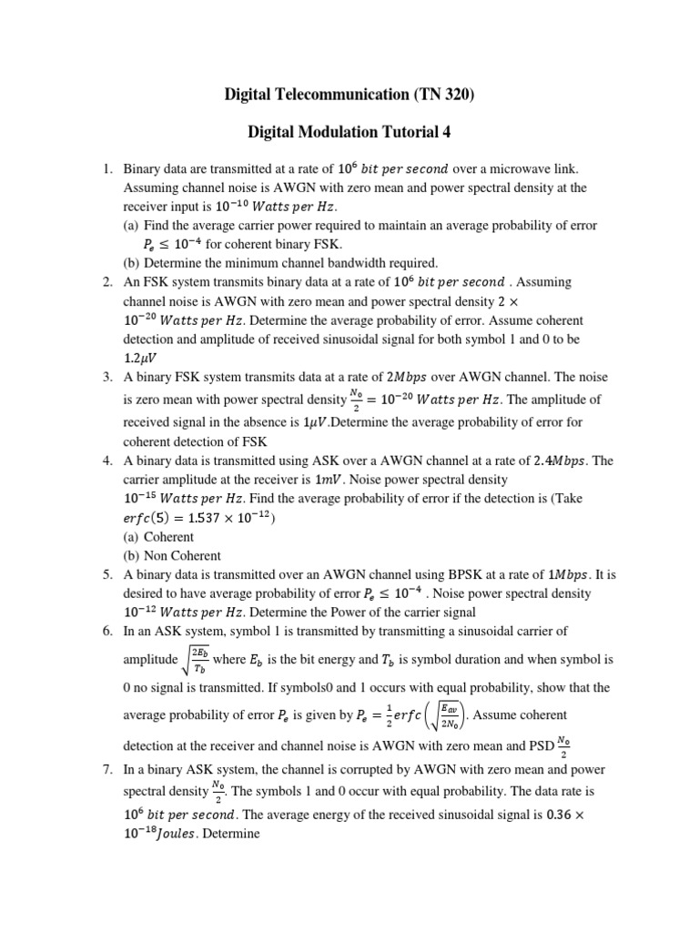 1. Binary data are transmitted at a rate of 106 𝑏𝑖𝑡 𝑝𝑒𝑟 𝑠𝑒𝑐𝑜𝑛𝑑 over a microwave link.