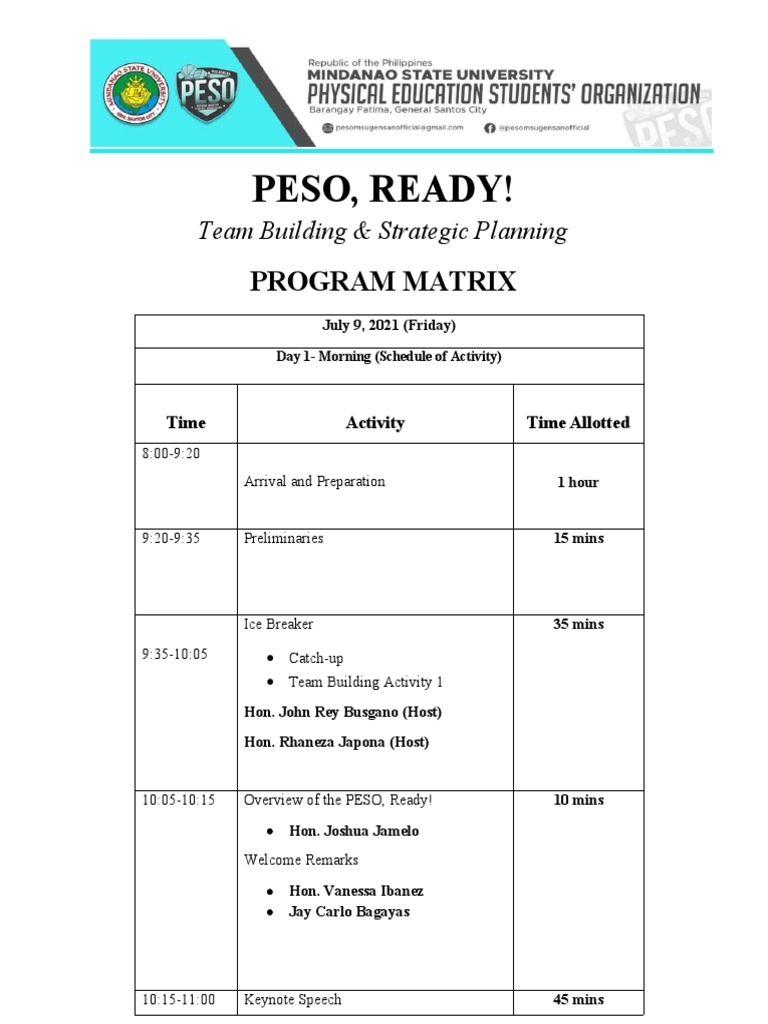 Day 2 - Morning (Schedule of Activity)