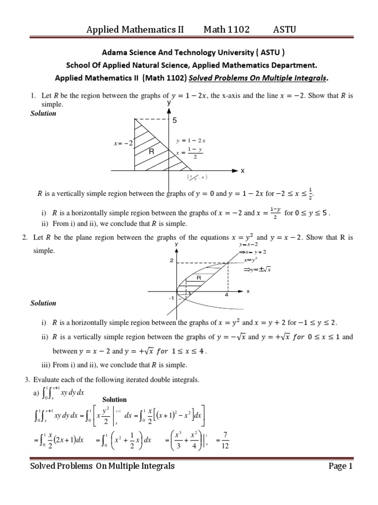 4. Evaluate dA if the triangular region bounded by the lines , and .