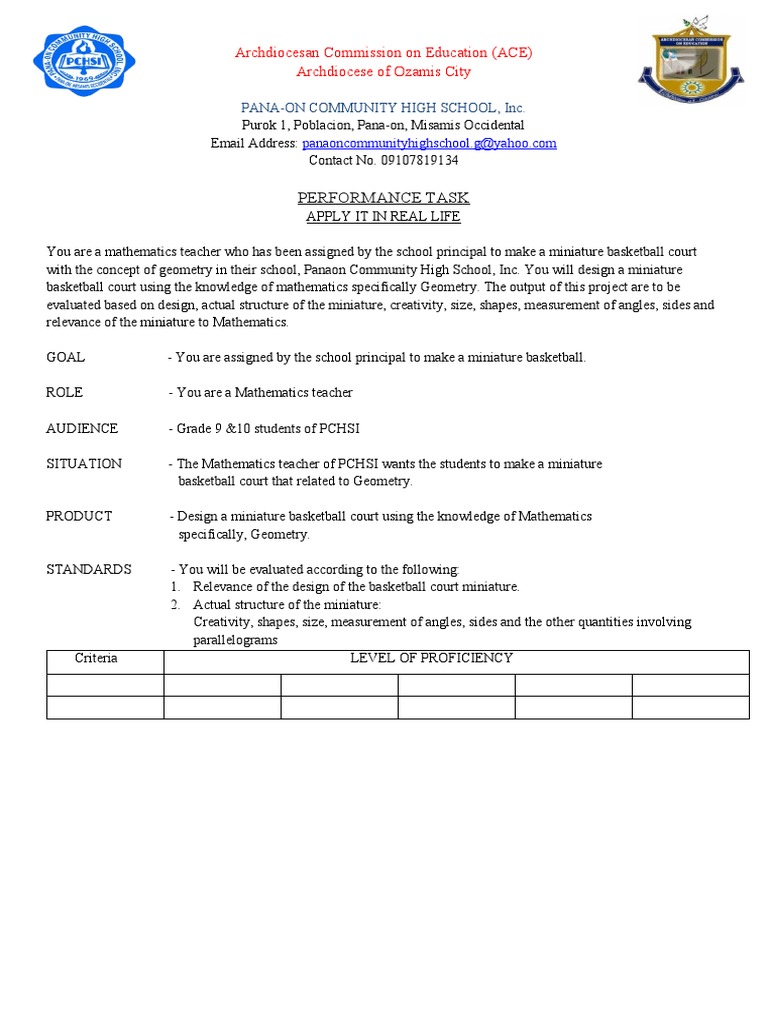 with the concept of geometry in their school, Panaon Community High School, Inc. You will design a miniature
