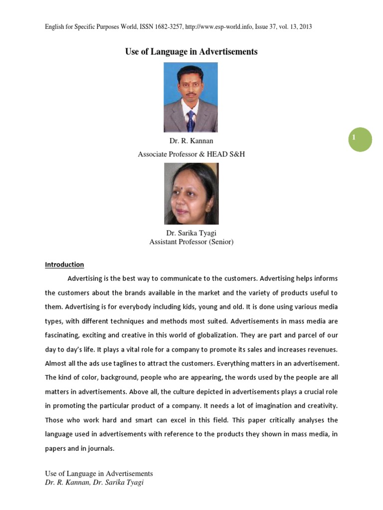 success in their life. Likewise, the kind of language used in advertisements in mass media as