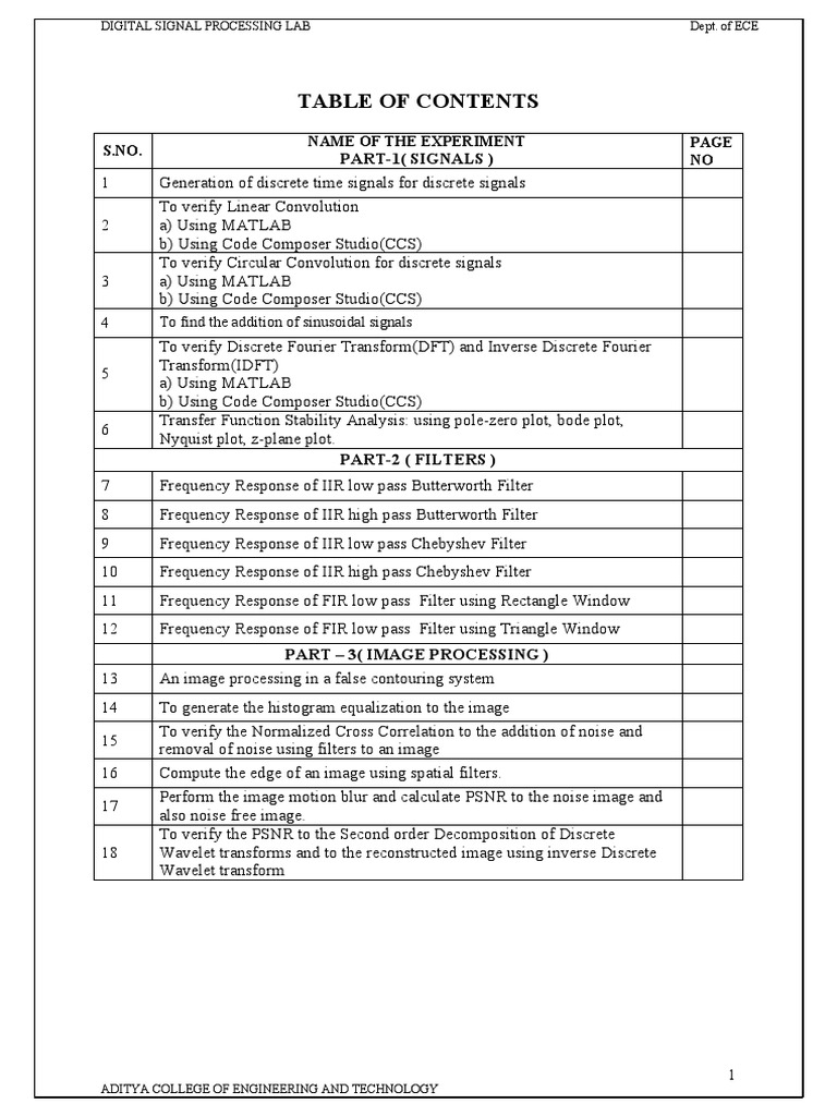 DIGITAL SIGNAL PROCESSING LAB Dept. of ECE