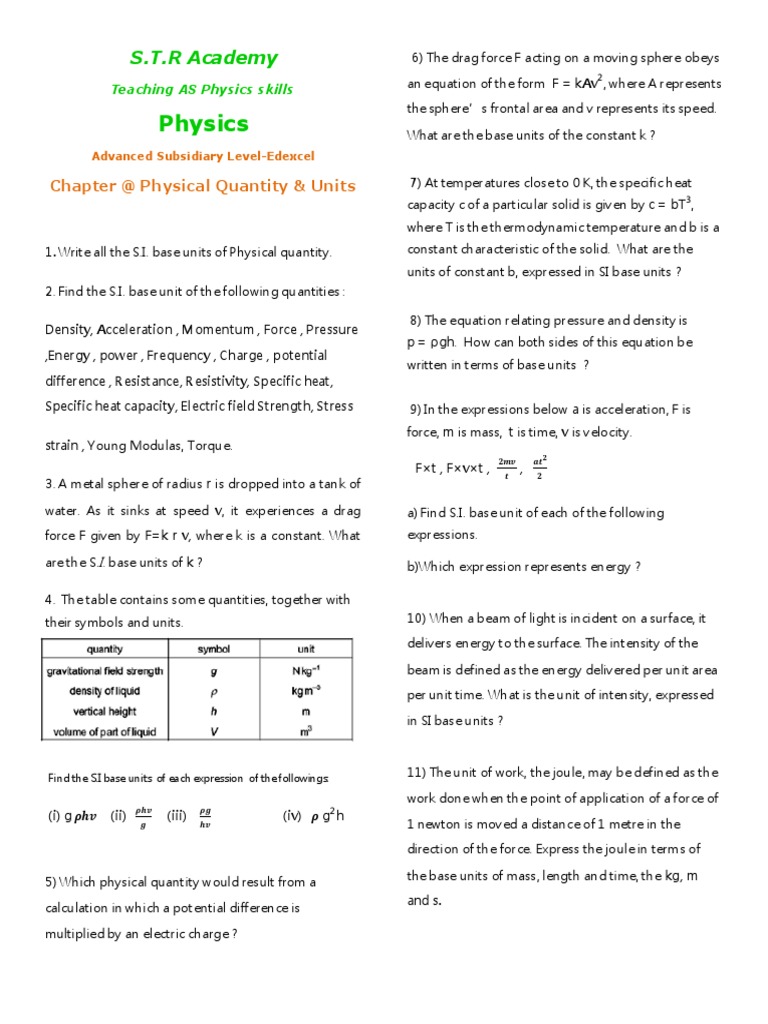 1. Write all the S.I. base units of Physical quantity. constant characteristic of the solid. What are the