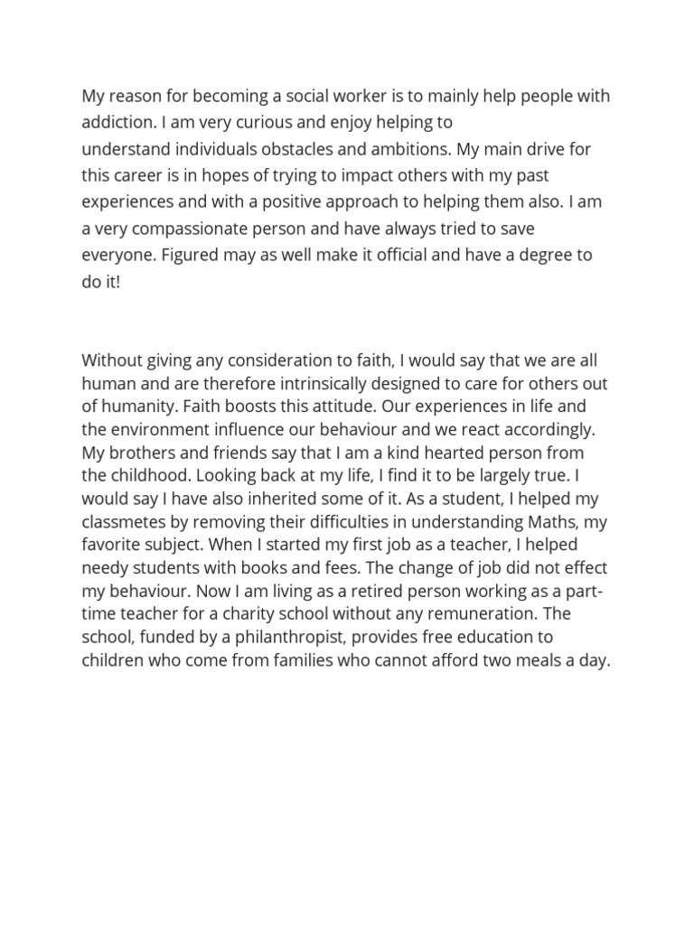 My reason for becoming a social worker is to mainly help people with