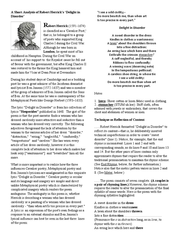 A Short Analysis of Robert Herrick’s ‘Delight in "I see a wild civility;--