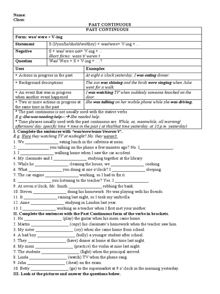 II. Complete the sentences with the Past Continuous form of the verbs in brackets.