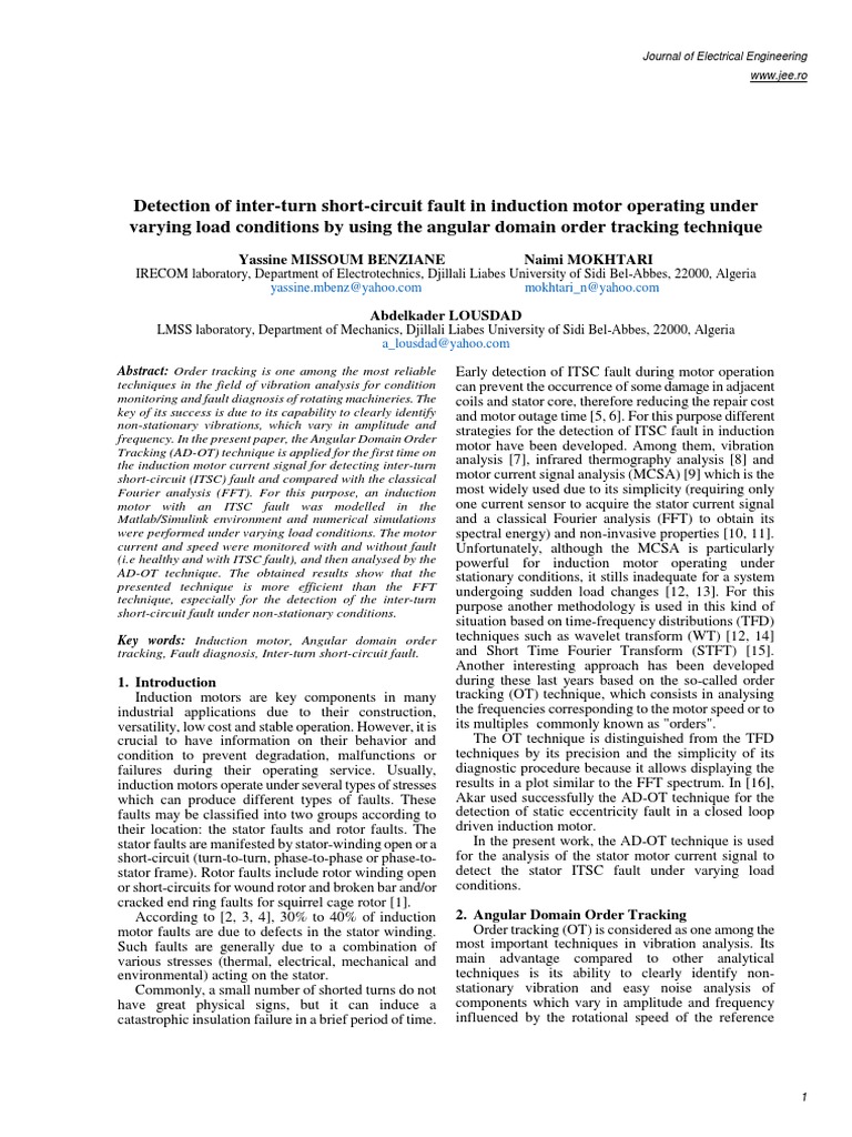 tracking, Fault diagnosis, Inter-turn short-circuit fault. and Short Time Fourier Transform (STFT) [15].