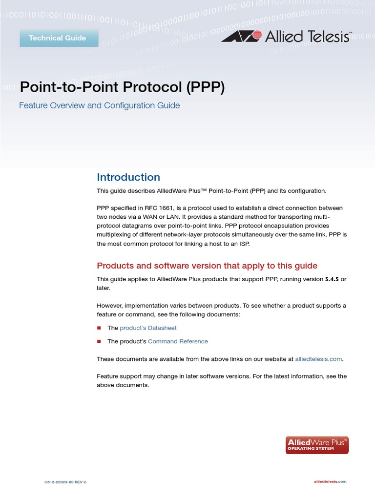 This guide describes AlliedWare Plus™ Point-to-Point (PPP) and its configuration.