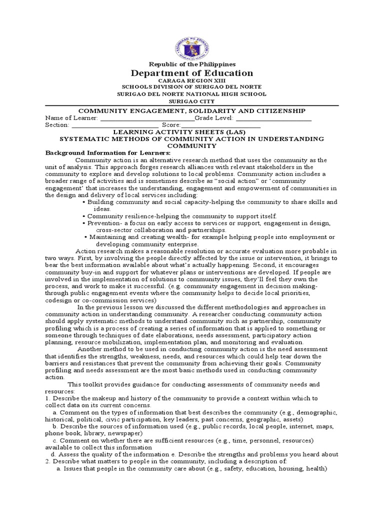 apply in undertaking community action. Enumerate the steps in each method. (e.g. needs