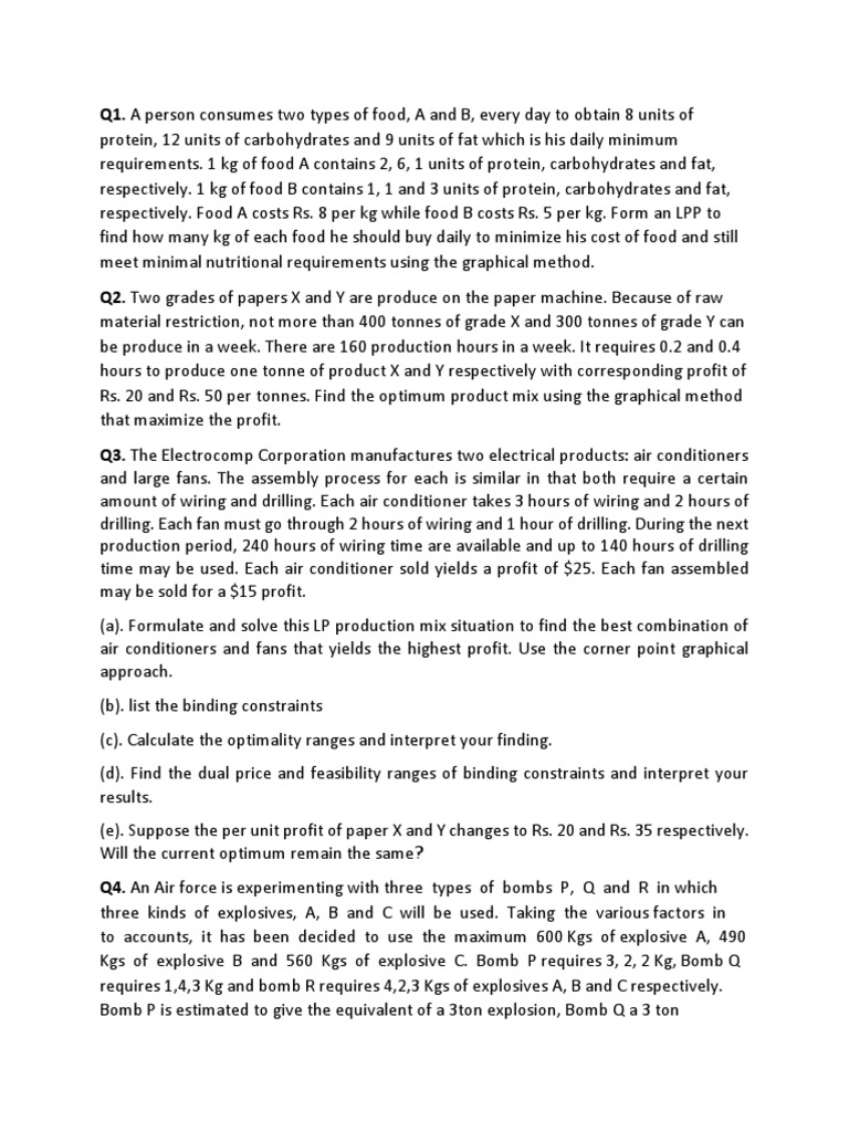 Q2. Two grades of papers X and Y are produce on the paper machine. Because of raw