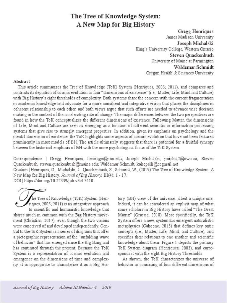 biology, psychology, sociology, medicine and other In the inaugural issue of the Journal of Big History,