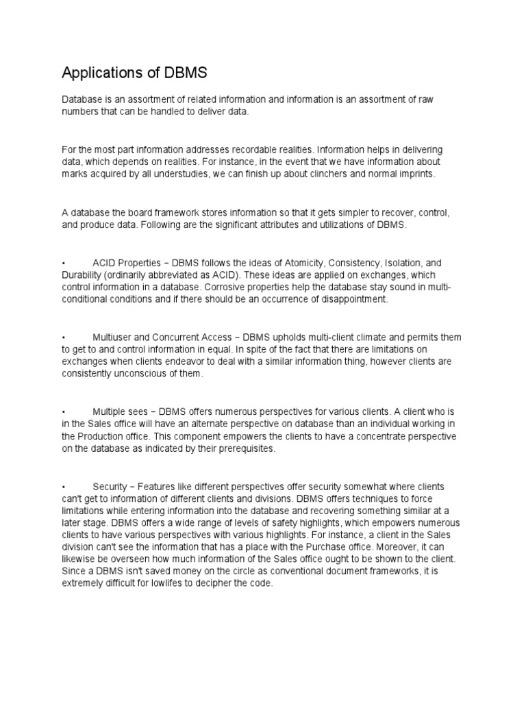 and produce data. Following are the significant attributes and utilizations of DBMS.