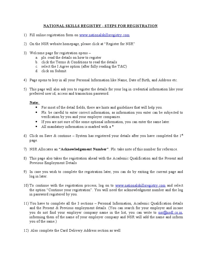 1) Fill online registration form on www.nationalskillsregistry.com