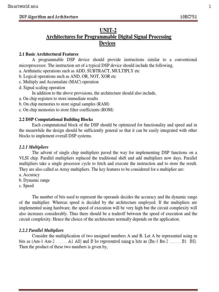 DSP Algorithm and Architecture 10EC751