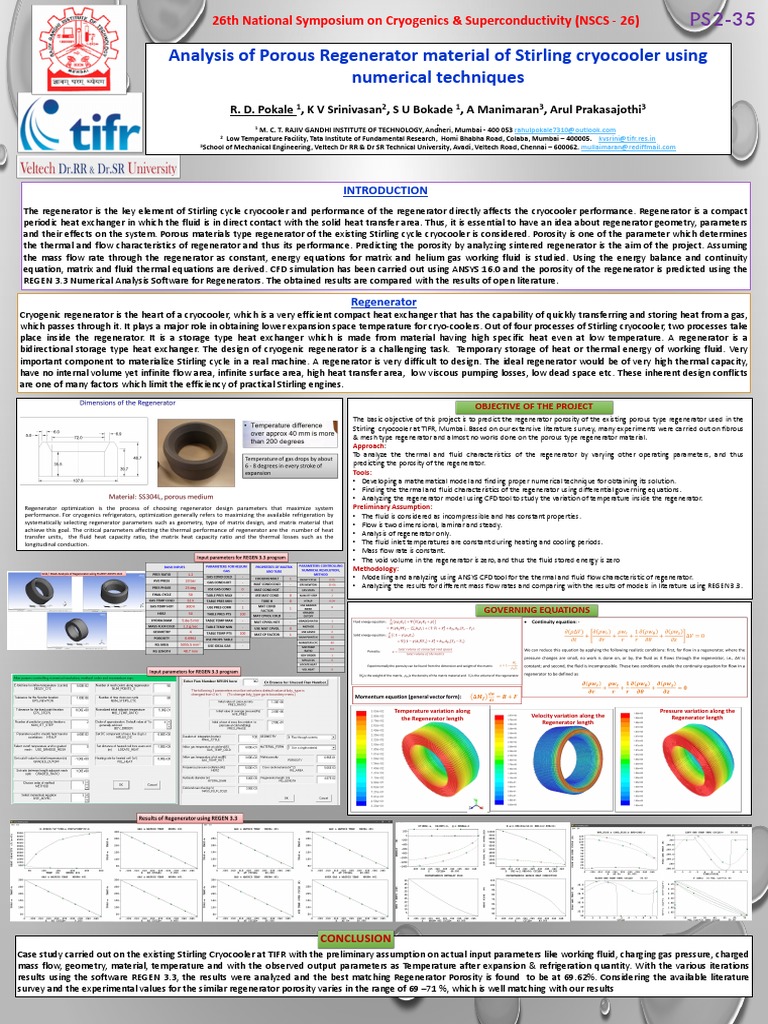 Stirling cryocooler at TIFR, Mumbai. Based on our extensive literature survey, many experiments were carried out on fibrous