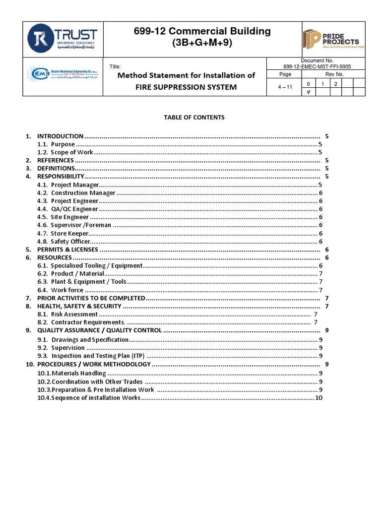 The purpose of this method statement is to establish the necessary guidelines for installation of fire