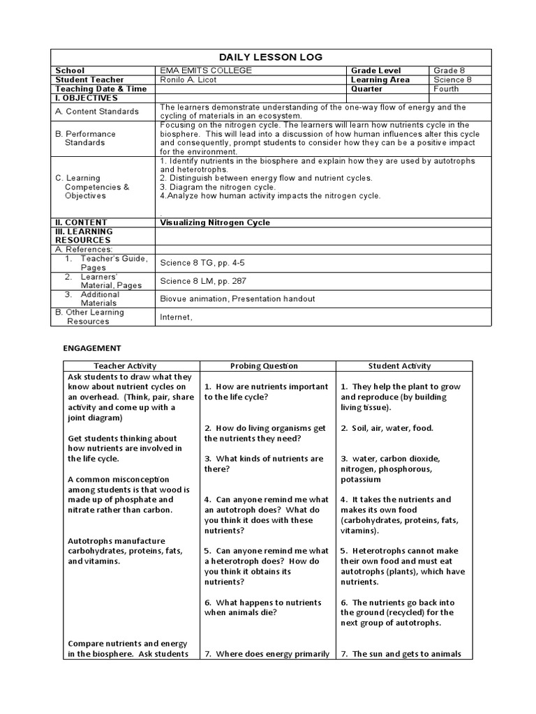 Student Teacher Ronilo A. Licot Learning Area Science 8