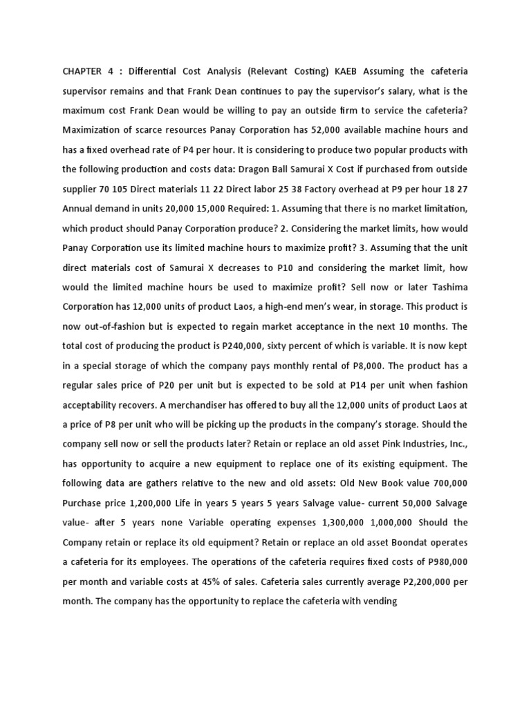CHAPTER 4 : Differential Cost Analysis (Relevant Costing) KAEB Assuming the cafeteria